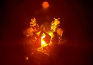 Usei resina epóxi pra criar o rio com aquele efeito cristalino, vegetação feita à mão pra construir a floresta, pequenas texturas naturais e a fogueira iluminada discretamente pra dar vida à cena. Cada elemento foi colocado por etapas, com detalhes feitos um a um pra deixar tudo harmonioso e com profundidade.
